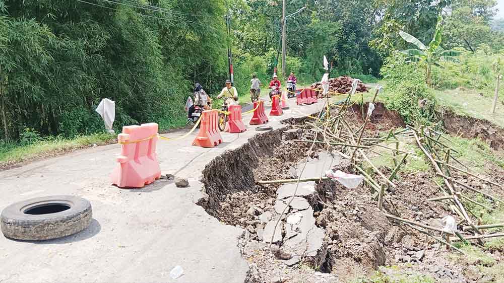 “Sementara akan dibronjong dulu jangan sampai bertambah berat. Ya karena (penanganan permanen, red) terbentur anggaran. Kami meminta masyarakat untuk bersabar dulu,” paparnya.