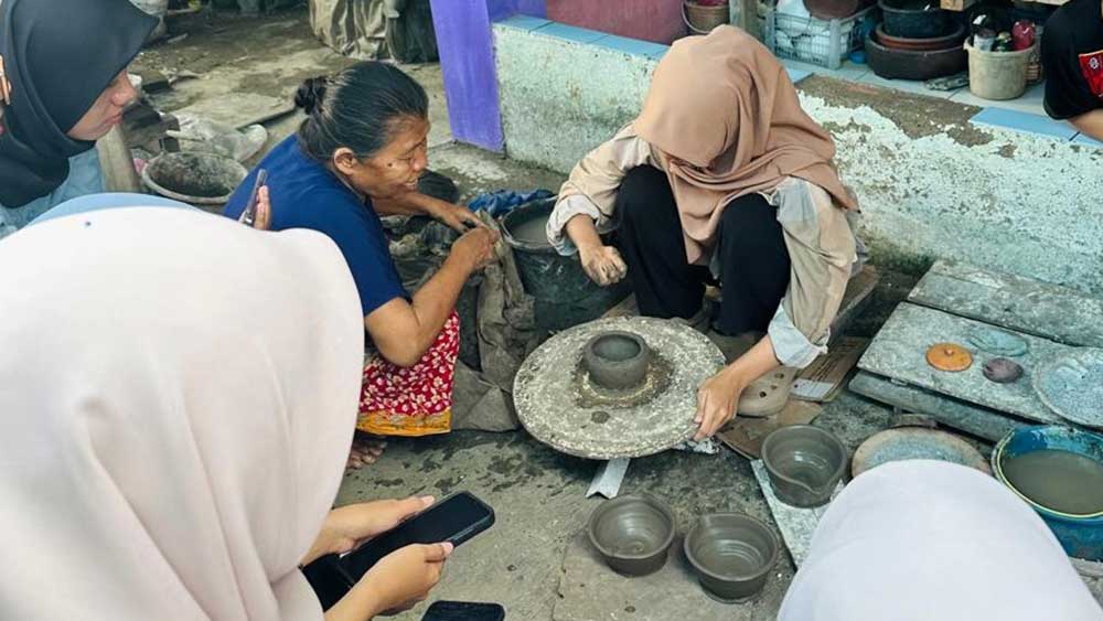 Tidak hanya itu, mahasiswa juga diajak berinteraksi langsung dengan pengrajin lokal dan mencoba sendiri membentuk gerabah sederhana, sebuah pengalaman yang membuka wawasan baru tentang proses kreatif seni tradisional.
