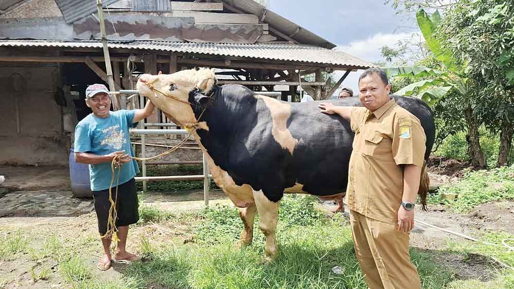 SUARA CIREBON – Kusnan, warga Desa Cikancas, Kecamatan Beber, Kabupaten Cirebon, tengah berbahagia dan bangga. Sebagai peternak, jerih payahnya membesarkan Doser, sapi asli kelahiran Kabupaten Cirebon hasil persilangan dari indukan jenis sapi simmental dan belgian blue melalui inseminasi buatan (kawin suntik, red), tidak sia-sia.