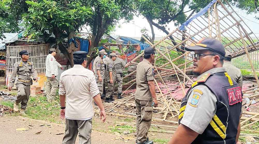 Setidaknya tujuh warung yang tak mengantongi izin ditertibkan pasukan gabungan Satpol PP dan TNI/Polri tersebut.