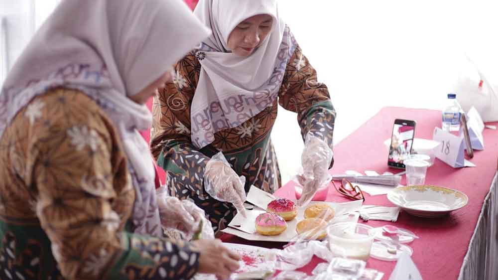 Kaum perempuan di Kabupaten Cirebon ini diberdayakan secara ekonomi melalui lomba dan pelatihan kreasi donat batik Nusantara kategori usaha skala kecil berbasis rumah tangga.