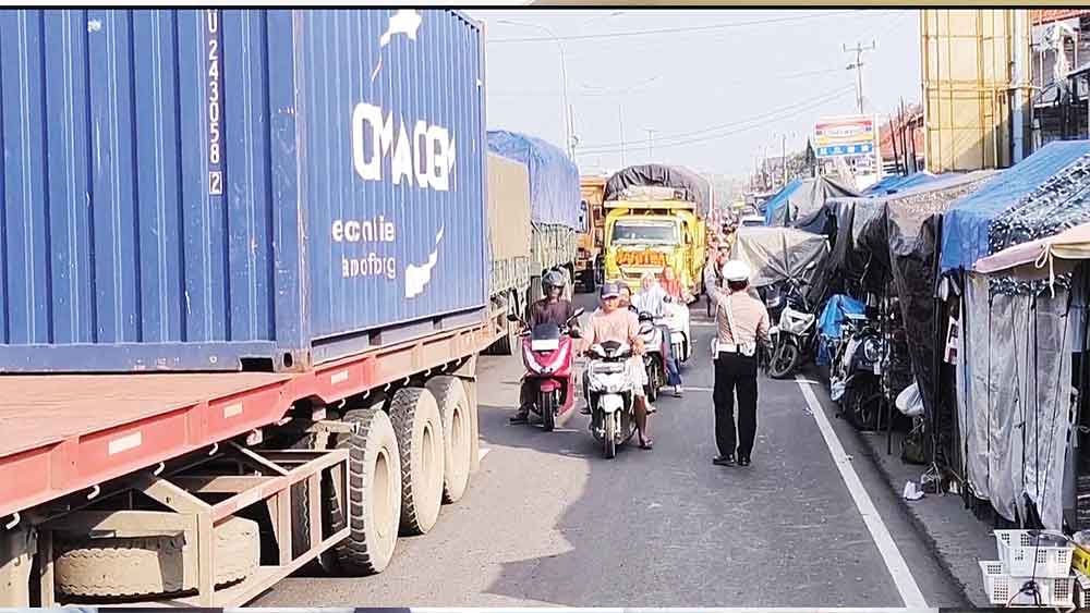 Kondisi tersebut membuat ruang gerak kendaraan di jalur pantura menjadi lebih sempit dan memicu perlambatan arus lalu lintas.
